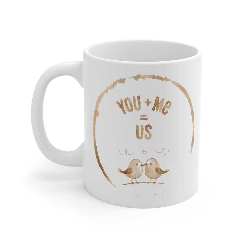 "You + Me = Us" Love Birds Ceramic Mug - Valentine Gift - Anniversary Gift (330/440ml)